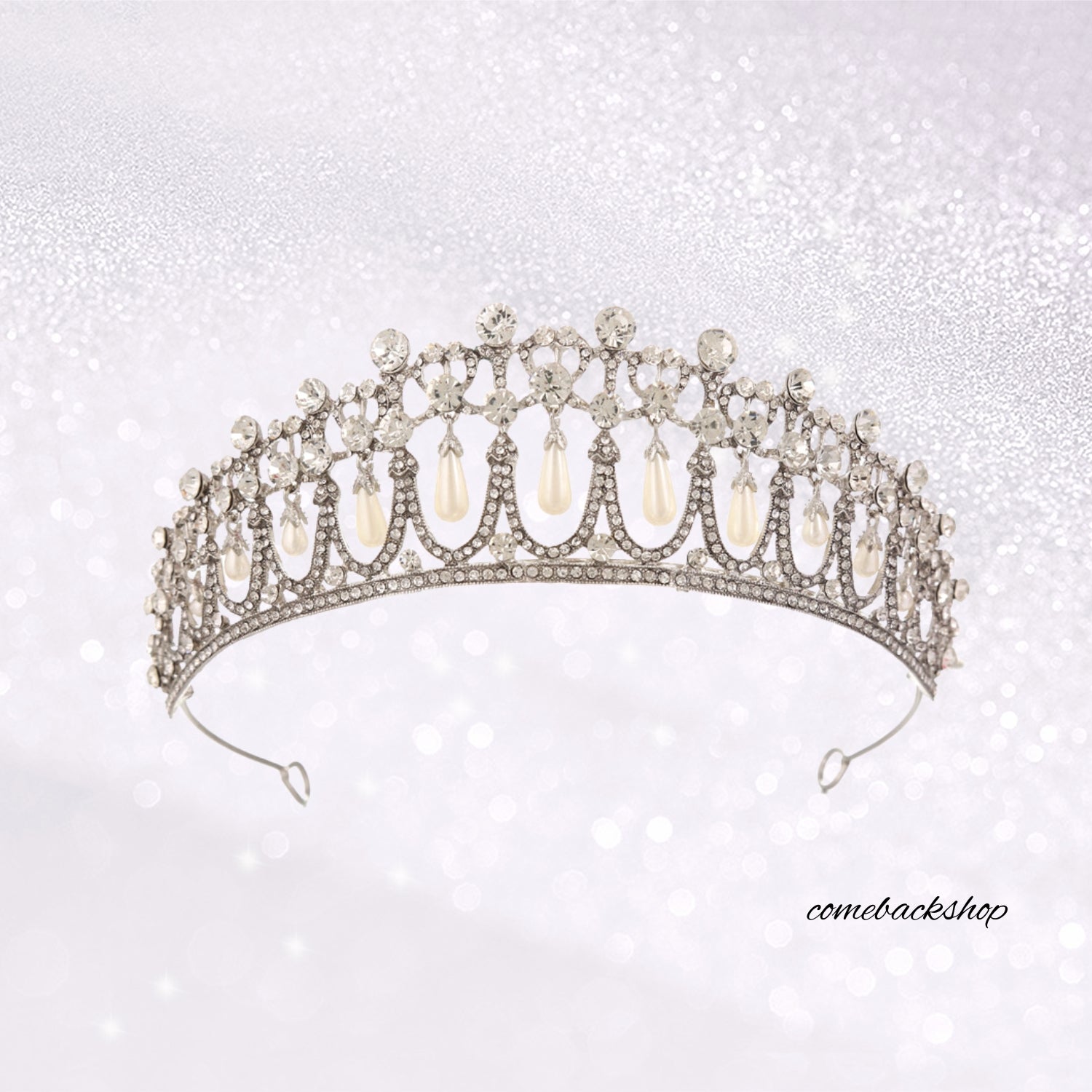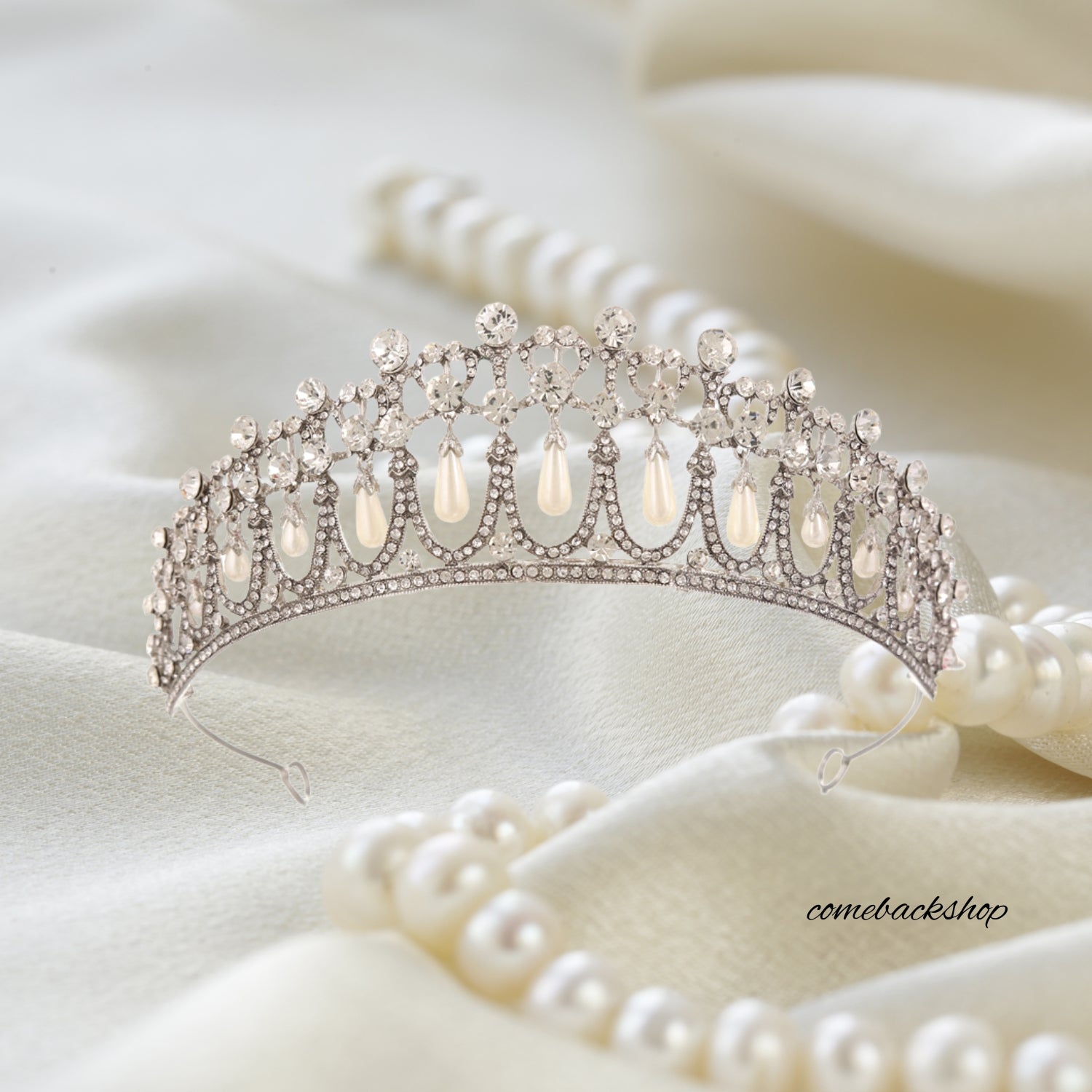 Pearl Tiaras and Crowns for Women, Wedding Tiara for Bride, Rhinestone Queen Crown, Silver Crystal Princess Headpieces for Prom Costume Party