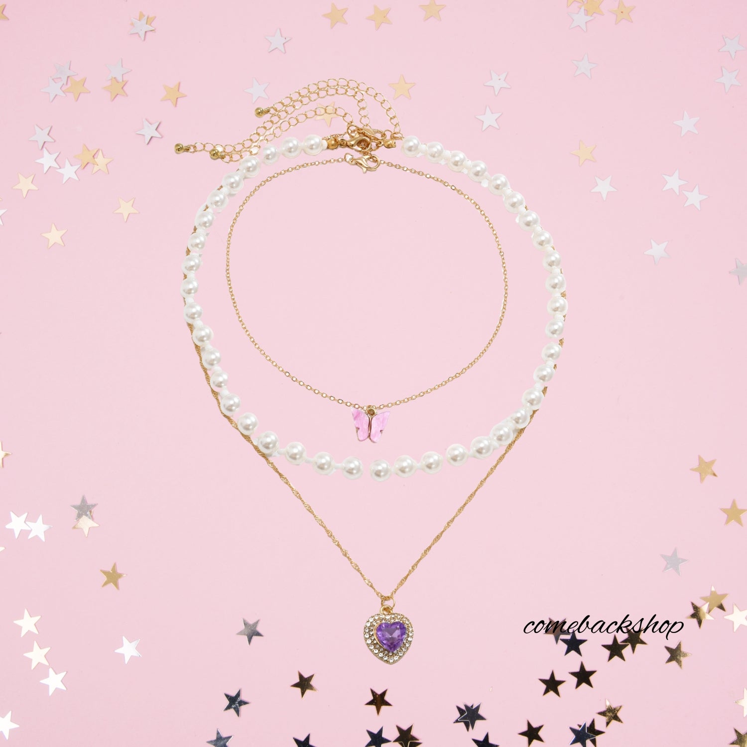 Pink Cute Butterfly Charm Jewelry Delicate Pendant Butterfly Necklace Birthday Christmas Gift for Wife Girlfriend Mom Teen layered necklace