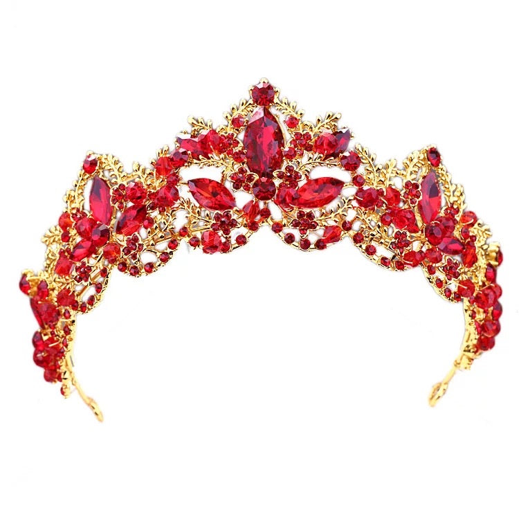 Red tiara crystal gold tiara wedding crown royal tiara birthday crown affordable elegance bridal