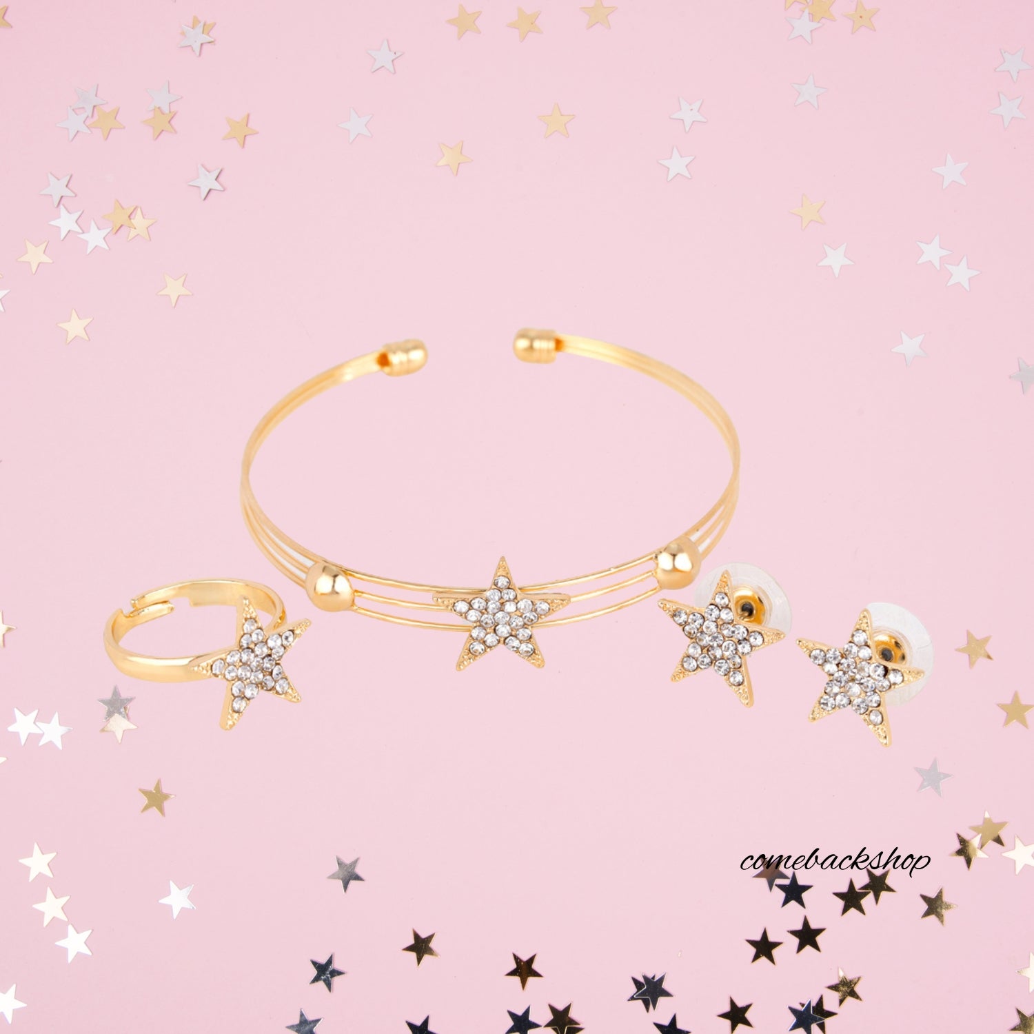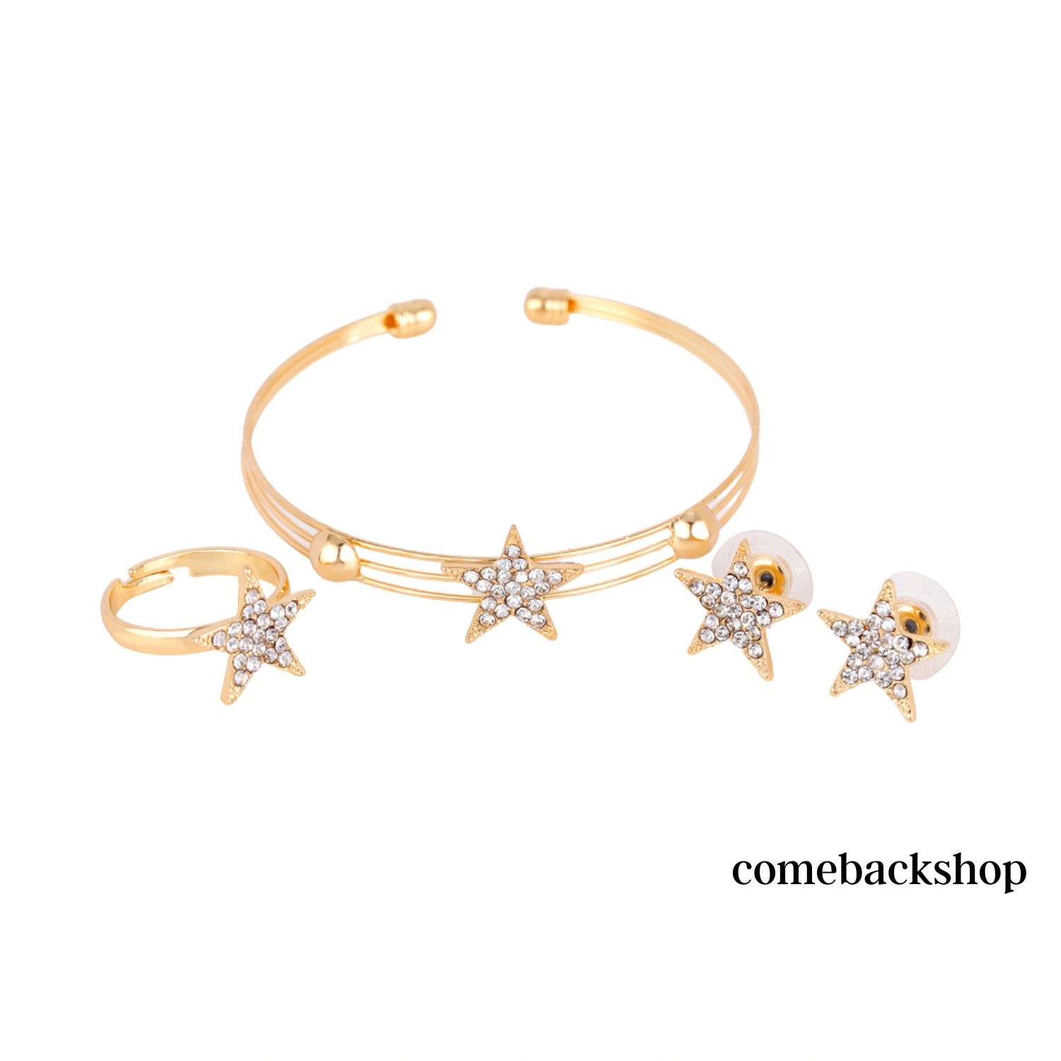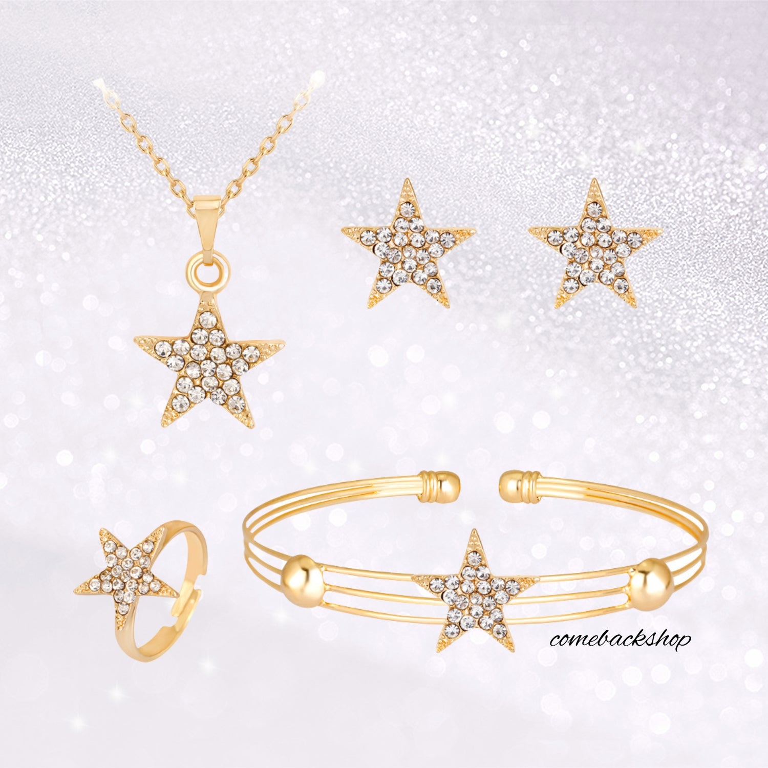 Star Gold earsdrop Earrings Necklace Jewelry Set For Bride Bridesmaids Bridal Wedding Party Prom