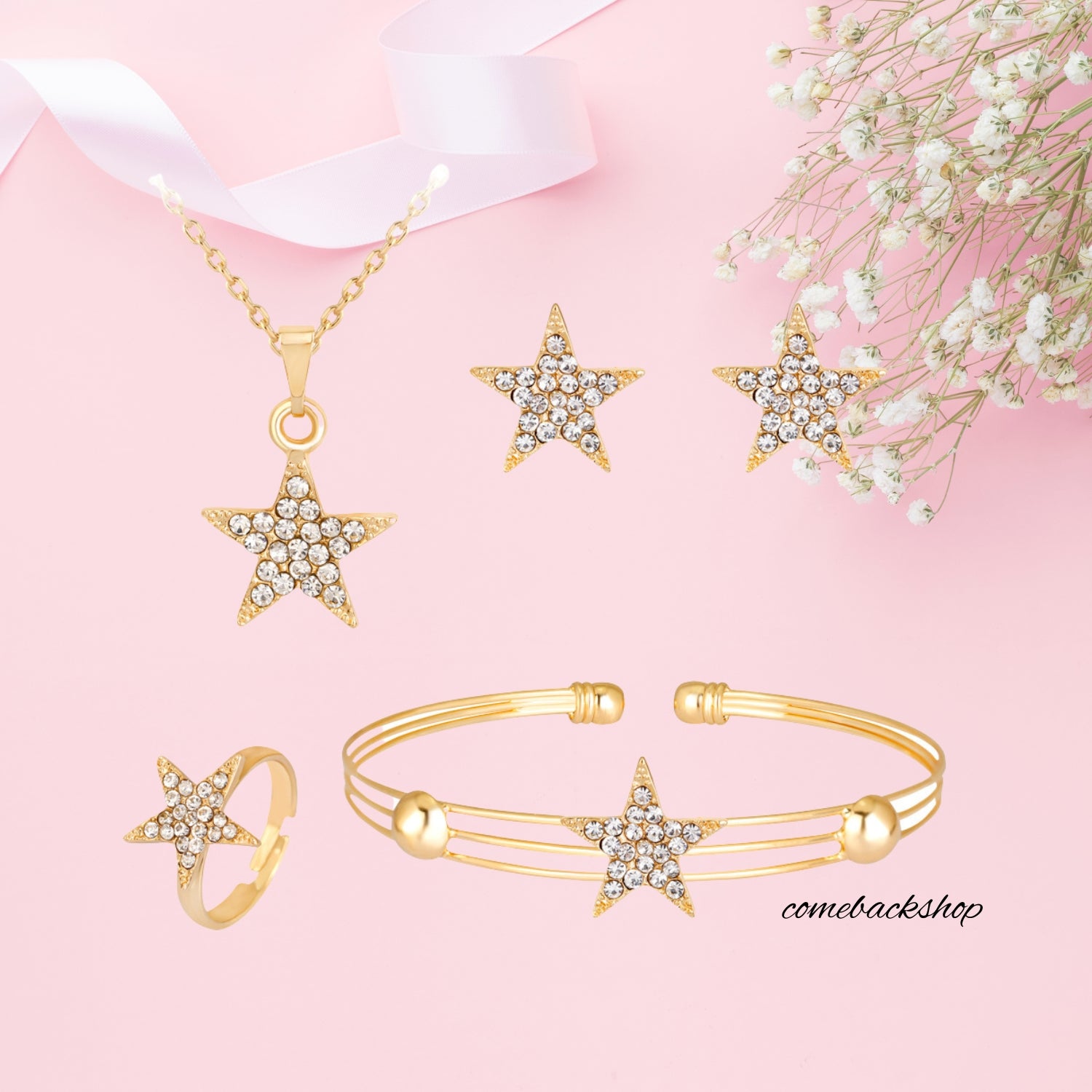 Included: Necklace+ Bracelet+Earrings+Ring